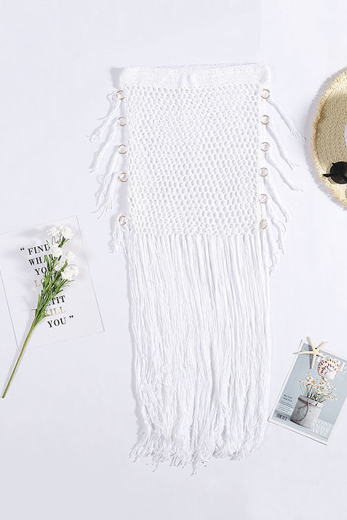 Bohemia Hand-Woven Crochet Hollow Out Tassel Skirt-AL9782