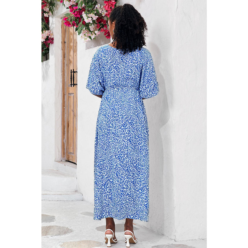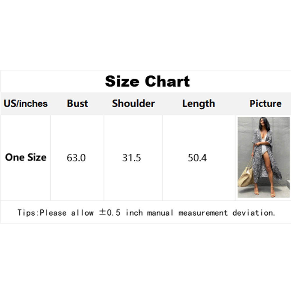 Charmo Women's Leopard Print Kimono Style Open Front Tie Waist Cover Up Swimming Maxi Dress
