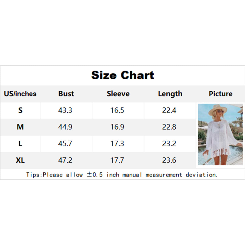 Charmo Women's Long Sleeve Hollow Out Crochet Cover Up with Fringe Hem