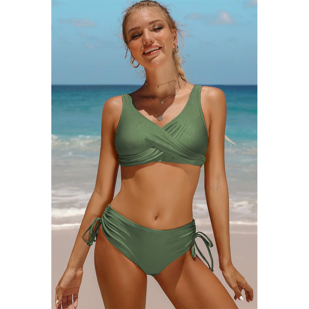 Charmo Women's Twist-Front Bikini Set Adjustable Side-Tie Bottoms & Back-Clasp Top Two Piece Swimsuits