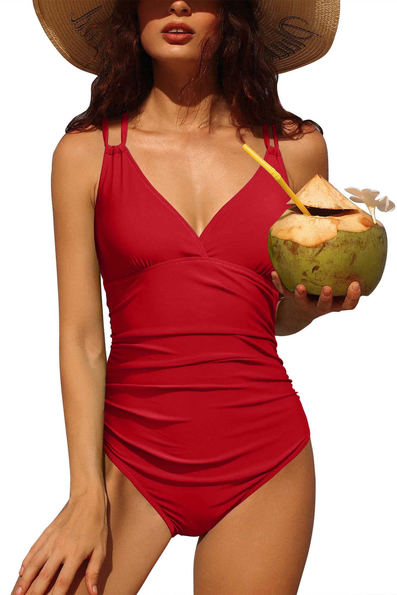 Tummy control one piece swimsuits for women with adjustable double criss cross spaghetti straps at back to get a perfectly fitting.