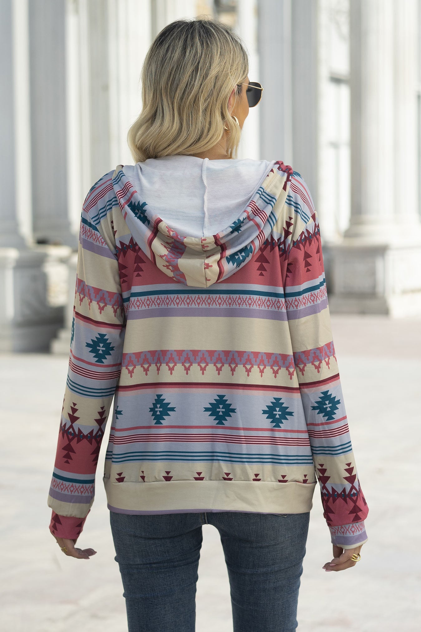 Sweatshirt Hoodie Geometric Print Pullover Top-AL9556