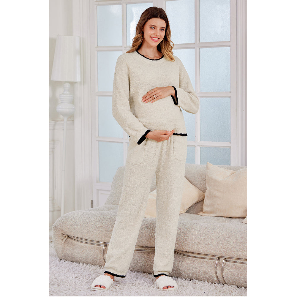 - This fuzzy pullover and pants set is perfect for pregnancy sleeping, postpartum rest, hospital stays, going-home outfits, and cozy winter lounging.
